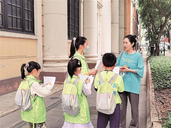 “您好,我是羊城晚报学生记者邬清菲,方便耽误您几分钟时间做个采访调研吗?” 在采访过程中老师发现,部分羊小记还是有些怯场。在一步一步耐心引导下,羊小记越发积极主动起来。仔细提问、认真记录,并在此过程中逐步改进与完善自己的语言表达能力。