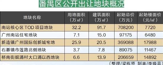 这宗规模最大的地块——南站核心区TOD项目地块,位于近年来住宅用地供应稀少的广州南站板块,计容建筑面积达91.735万平方米,实际起拍成本价超过100亿元。