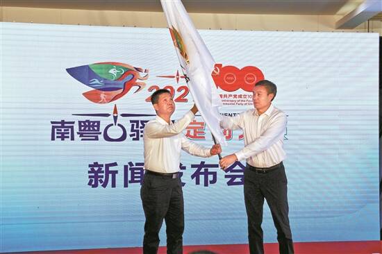 麦良代表组委会向今年首站汕尾海丰站授旗,海丰县人民政府副县长吴光群作首站筹备工作报告;广东省社会体育中心与七个承办地签订赛事承办任务书。南粤古驿道定向大赛视觉与景观设计总监张强介绍了赛事标识和设计理念,他表示,2021年南粤古驿道定向大赛将契合红色主题,在赛事的内涵与展示、宣传上体现鲜明的红色元素。大赛今年将在汕尾海丰、阳江阳西、江门恩平、东莞石排、肇庆封开、清远佛冈、韶关乐昌等七地展开。吴光群表示,将把首站海丰站的赛事办成一次慷慨激情、特色鲜明的体育盛会,并通过赛事平台,传承海丰红色文化,弘扬老区革命精神。