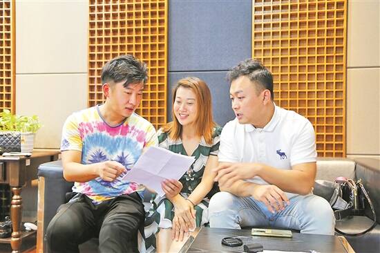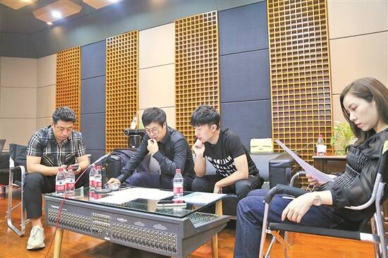 宋雪莱(左二)指导歌唱演员录音