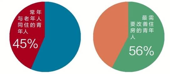 与此同时,青年人对住房、工作、收入等个人经济生活方面的评价在2020年明显落后,“安居乐业”仍是青年人对美好生活的重要期盼。“安居”方面,青年人对“住房状况”的满意度为49%,较多青年人为解决住房问题与老年人同住,在民调中明确表示自己常年与老年人同住的青年人比例为45%。在各项民生事项中,青年人表示住房保障最需要改善,比例为56%,在各事项中最高。