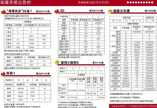 彩票公告 2021年05月04日