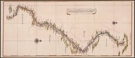 《从广州到北京内河航线图》 制图者:[荷]芬彭士 制图年代:1668年 原件收藏机构:奥地利国家图书馆 由澳门科技大学图书馆复制并提供