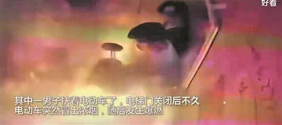 四川成都市某小区电梯内电瓶车起火事件(截屏图片)