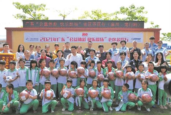 为传承红色基因,激发青少年参与体育运动的热情,促进其身心健康发展,由广东省体育彩票中心、广东省青少年体育联合会(以下简称“广东青体联”)主办的2021广东“公益体彩 快乐操场”革命老区苏区行活动于4月29日走进惠州市龙门县平陵镇实验学校。这也是该系列活动的第二站。