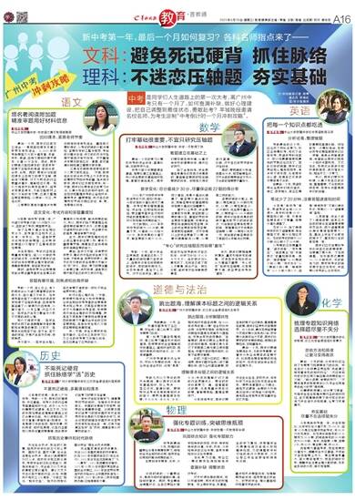 中考是同学们人生道路上的第一次大考,离广州中考只有一个月了,如何查漏补缺、做好心理建设,把自己调整到最佳状态,勇敢赴考?羊城晚报邀请名校名师,为考生定制“中考倒计时一个月冲刺攻略”。