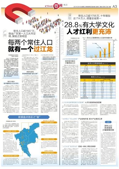 “广州是华南地区的经济中心、文化中心、科技中心,1800万的常住人口凸显了城市吸引力。下一个十年,广州肯定会朝着2000万的人口规模发展,那么就要更加注重城市的人口承载力,通过合理规划、布局医疗教育资源等,建设一个更宜居的城市。”广州市社会科学院研究员彭澎表示。