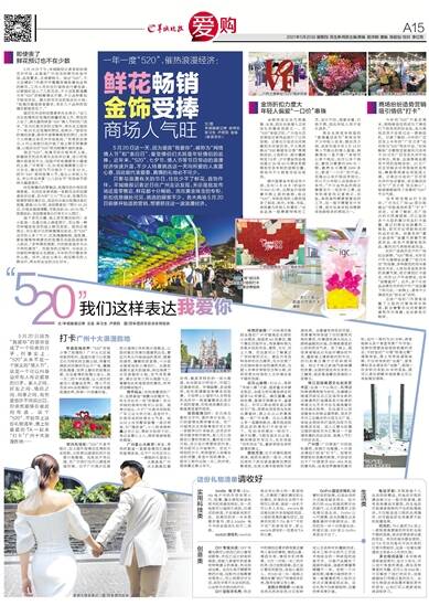 只要与浪漫有关的节日,往往少不了鲜花、首饰作伴。羊城晚报记者近日在广州走访发现,无论是批发市场还是零售店,鲜花都十分畅销。而在黄金珠宝的专柜,折扣信息随处可见,挑选的顾客不少。各大商场5月20日前便开始造势营销,想要抓住这一波浪漫经济。