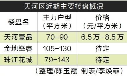 从羊城晚报记者掌握的情况看,天河楼市这一轮供应小高潮,有较多七八十平方米的单位推出,是天河区“上车”级别的产品,三盘总货量预计有四五百套。