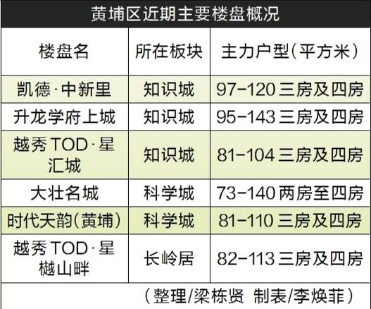 黄埔区近期有新动作的楼盘都位于已开通或在建的地铁站旁。凯德·中新里靠近地铁14号线知识城支线何棠下站,首期产品推出已是5年以前。升龙学府上城邻近地铁14号线知识城支线汤村站,以及已经立项的华南师大附中知识城校区。越秀TOD·星汇城邻近地铁21号线和14号线知识城支线换乘站镇龙站。越秀TOD星樾山畔位于地铁7号线二期水西北站附近。大壮名城靠近地铁6号线和21号线换乘站苏元站,建设中的地铁7号线科丰路站就在售楼部门口。时代天韵(黄埔)距离地铁6号线香雪站约1公里。