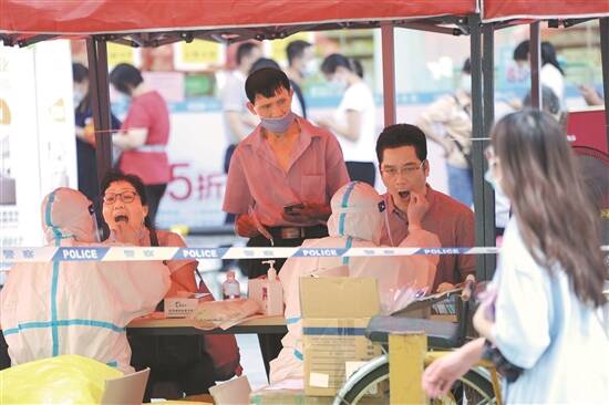 广州荔湾区锦龙社区的居民排队进行核酸检测 羊城晚报记者 杨奇 摄