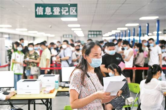今早,海珠区一大型疫苗接种点,市民有序排队积极接种疫苗 羊城晚报记者 林桂炎 摄