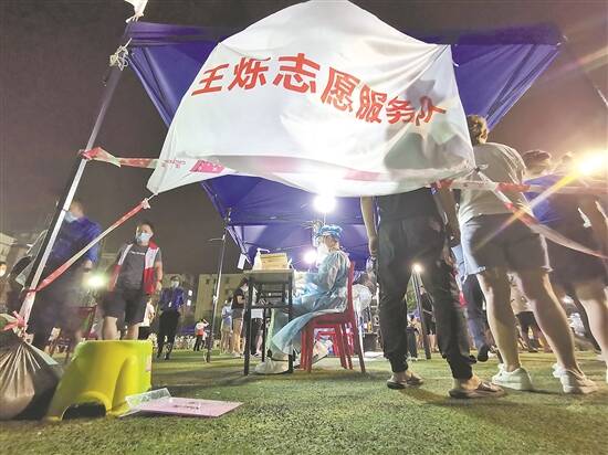 6月1日0点,广东省职防院疫情防控突击队员还在给鹭江群众采集核酸。凌晨4点,这里灯火通明,依然“大排长龙”。无论高温还是暴雨,队员们始终坚持耐心专业,在预检分诊岗位上,认真细致地核对采样信息;医护人员快速为前来的街坊采样。