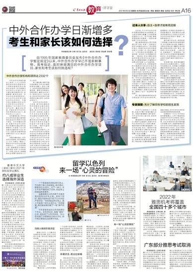 近年来,不少中外合作办学机构都持续增设专业或课程,扩大招生范围与数量,以求培育更多国际化人才。“足不出国”便能享受到国外的教育,一些考生便选择了中外合作办学。