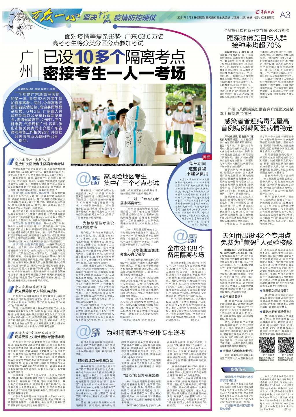 广州已设10多个隔离考点 密接考生一人一考场