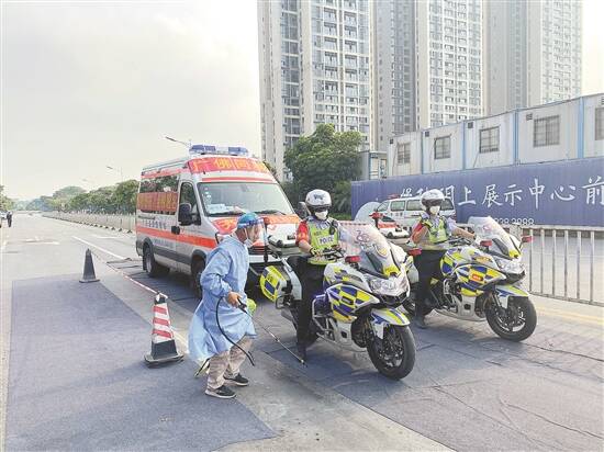 交警为接送考生的专车开道 陈思颖供图