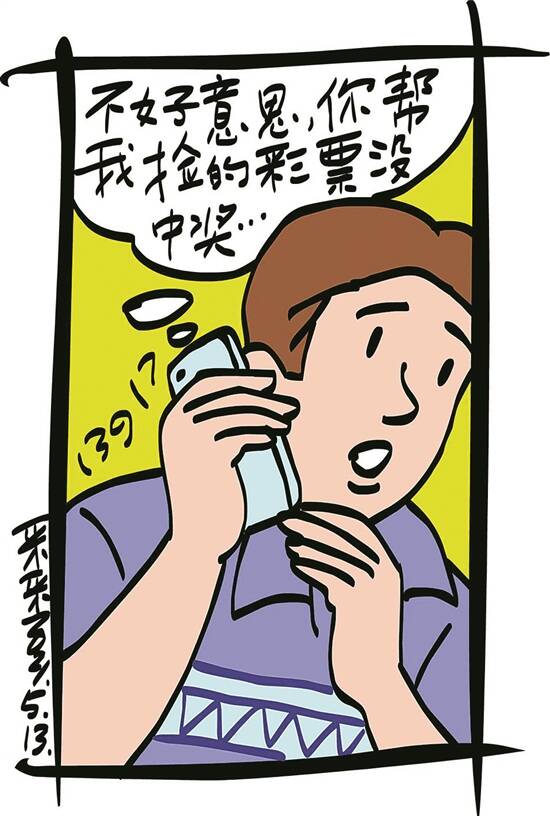 晓庆接过彩票,连连向女子道谢,不想女子说:“看你小气的,说声谢就完了呀。”晓庆一愣,没想到女子会这样为难他。正不知所措,女子又说:“你掉的彩票,说不定能中大奖呢,如果丢了,你损失就大了。”晓庆没想到女子会这样想,就说:“那好,这张彩票如中了一等奖,我就分你一半奖金。”女子说:“就是二等奖你也要分我一半!”晓庆连连答应:“行,给我留个联系方式,如果真中了奖,我就分你一半。”说完,两人互留了电话。