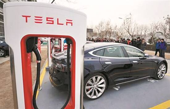正在充电的特斯拉 新华社发