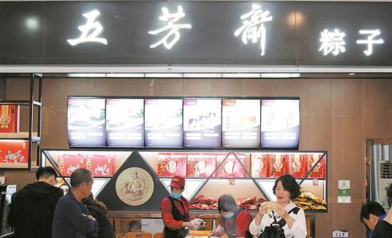 餐饮渠道也成为五芳斋的布局重点。五芳斋在1956年就曾经营国营饮食店,1994年后才将主要精力放在零售业。2008年,五芳斋决定重操旧业,开启餐饮业务,现在已有直营店169家,合作经营门店数43家。尽管线下门店以亏损居多,直营店数量逐年减少,但五芳斋还在持续投入,计划未来三年新设直营店51家。公开资料显示,五芳斋所有餐饮店的食品都由中央厨房统一配送,门店只负责简单加工。这些餐饮店在提供快餐的同时,也帮助粽子成为一日三餐的食品,不再局限于节庆食品。