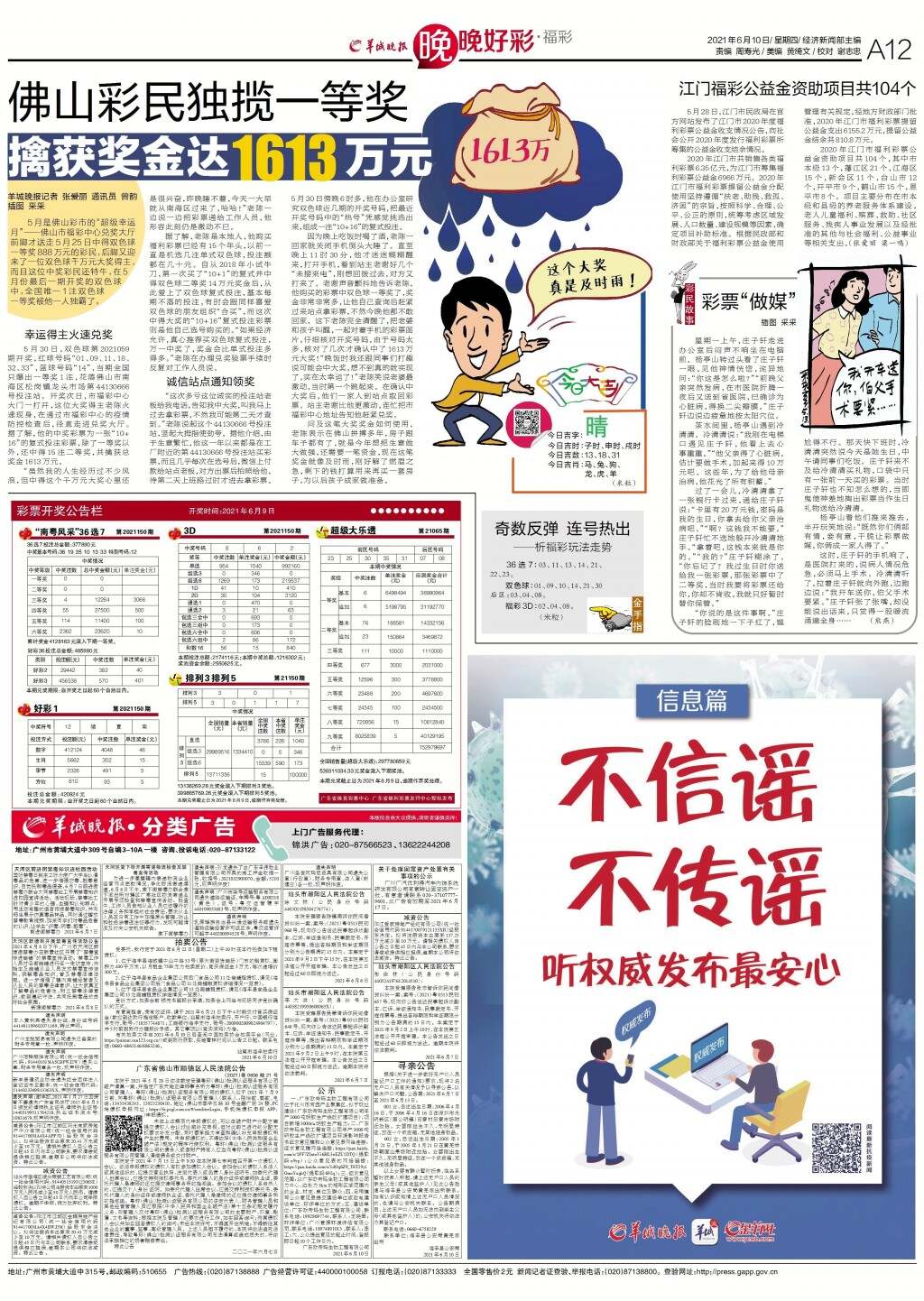 佛山彩民独揽一等奖 擒获奖金达1613万元