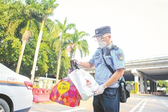 公安民警接力为芳村片区封闭小区病人送药 羊城晚报记者 梁喻 摄