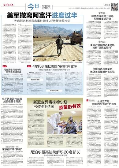 依据塔利班去年2月与时任美国总统唐纳德·特朗普领导的美国政府所签协议,驻阿美军和北大西洋公约组织部队将分阶段从阿富汗撤出。约瑟夫·拜登入主白宫后,美国政府将美军完成撤离期限从今年5月1日推迟至9月11日。