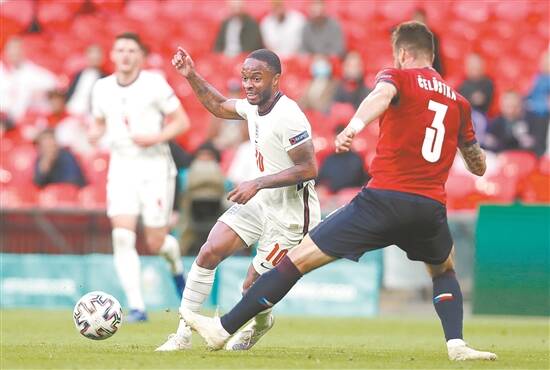 捷克此役的首发阵容与上一场相同,毕竟其“板凳深度”无法与英格兰相比。可是捷克也采取了变通办法,就是在高位逼而不抢,只盯着对方有球权的后卫,却不轻易上抢。其实,英格兰不约而同地采取了相同的办法,这使得比赛较为开放,双方都打出了自己的配合套路,这使得此役颇具观赏性。