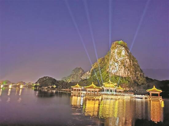 置身肇庆城央的七星岩,白天,湖水颜色翡绿、水质清澈,山岩在湖中的倒影清晰可见;夜晚,抬望眼,就能捕捉到北斗七星的踪影。