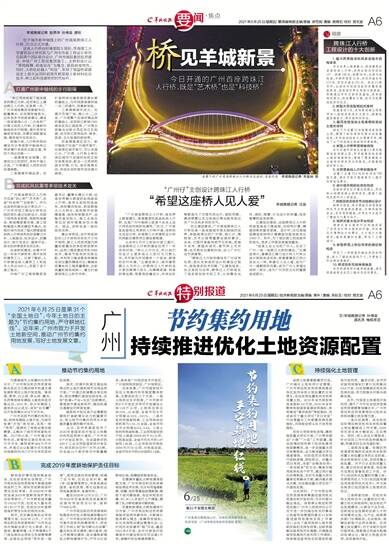 2021年6月25日是第31个“全国土地日”,今年土地日的主题为“节约集约用地,严守耕地红线”。近年来,广州市致力于开发土地新空间,推动广州节约集约用地发展,写好土地发展文章。