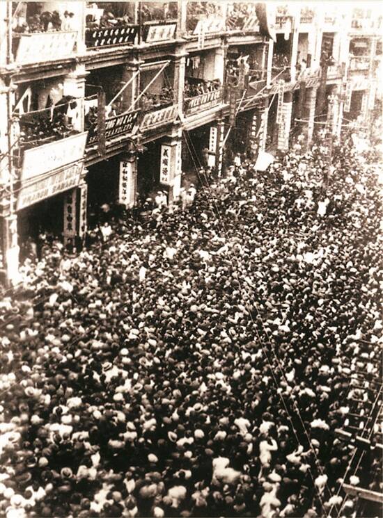 1922年3月,香港海员大罢工胜利,数万群众聚集在工会会所(德辅道中137号3楼)前围观港英当局把工会招牌挂上的热闹场面 香港海员工会供图