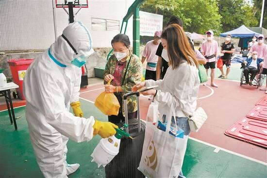 记者还看到,当天还有不少在外隔离的群众陆续返回鹤园。在志愿者们挨家挨户进行消杀后,他们终于返回到家中。83岁的李伯由于腿脚不便,要靠轮椅出行。四名志愿者齐心协力,将他送到了四楼的家中。
