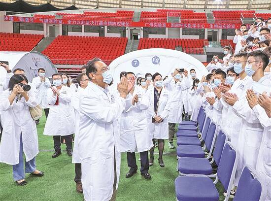 6月30日,钟南山院士对奋战一线的猎鹰号气膜实验室工作人员表示感谢