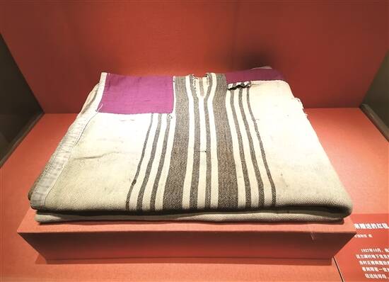 这些展品蕴含着丰富的革命故事。其中,“周恩来赠送的红毯(陆丰市博物馆藏)”讲述的是,1927年10月,周恩来率领南昌起义军南下时,在广东省陆丰县南塘区兰湖村地下党员郑阿仲的安排下,住在郑阿仲堂兄郑端良家。当时正被病魔折磨的周恩来,受到了郑家人的悉心照料。临别前,周恩来看到郑家一贫如洗,郑母只能用麻包袋做被子,于是将随身红毯送给了郑母,以表谢意,并鼓励郑阿仲努力做好革命工作。
