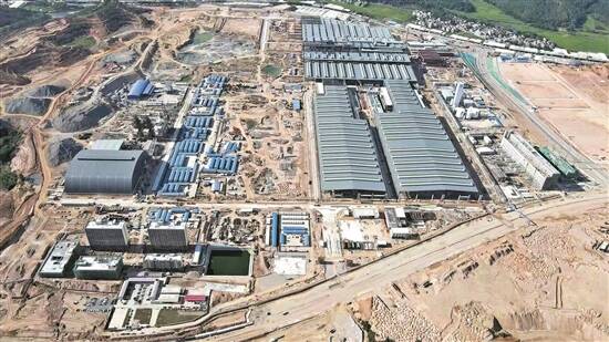 在广东金晟兰冶金科技有限公司年产800万吨优特钢项目建设现场,一台台挖掘机长臂挥舞,一辆辆水泥罐车来往穿梭,一张张绿色安全网规范整洁,一个个“红帽子”工人忙碌施工,一台台泵车正马不停蹄浇筑基台……热火朝天的建设场景催人奋进。