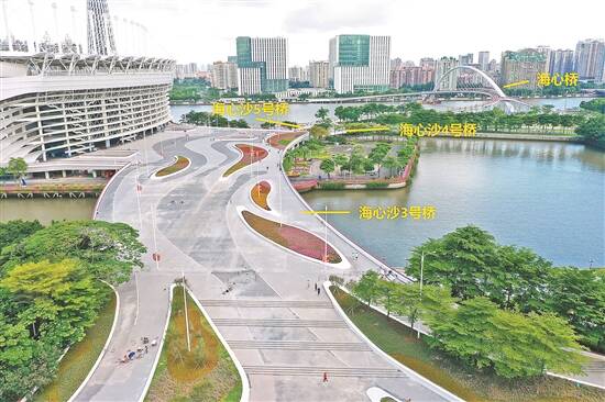 羊城晚报讯 记者梁怿韬摄影报道:记者获悉,此前为配合“广州塔南广场配建珠江两岸人行桥新中轴线跨江慢行系统品质提升改造项目”(以下简称“品质提升项目”)而围蔽施工的海心沙3号桥已重新开放,市民和游客在海心沙亚运公园开放时间内目前无需预约即可上桥,通过该桥和海心沙内其他桥梁即可到达二沙岛和海心桥,比以往需绕道正对着花城广场的海心沙2号桥便捷很多。