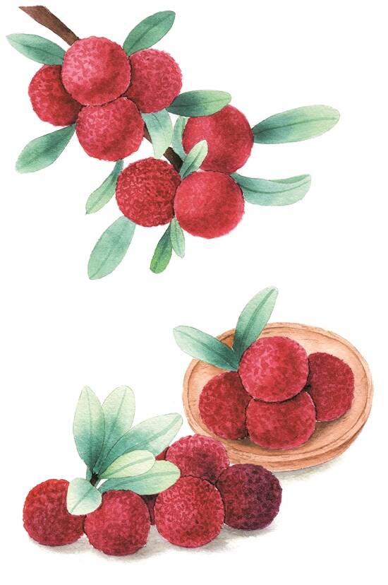 杨梅主要生长在山地,过高或过低的海拔都会对杨梅的生长造成影响。而且,它尤其喜好红色和黄色的泥土。东北的黑土地虽然肥沃,却难以种出杨梅。杨梅还偏爱温暖湿热的气候,但太过炽烈的阳光又会灼伤杨梅的表面果肉。所以,越是多雨多云,杨梅越喜欢。即使同一座山头上,北面坡地的杨梅也会比南面的更好吃。