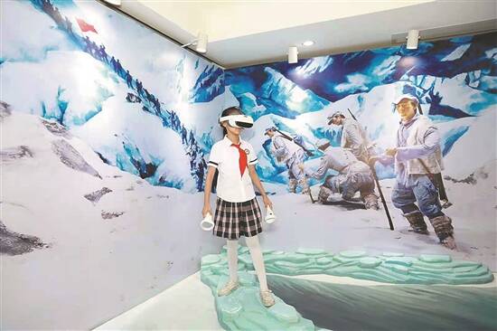 思政课上,借助“VR智慧思政室”技术支撑,18名少先队员戴上VR眼镜,开启重温长征路的“沉浸式”体验。