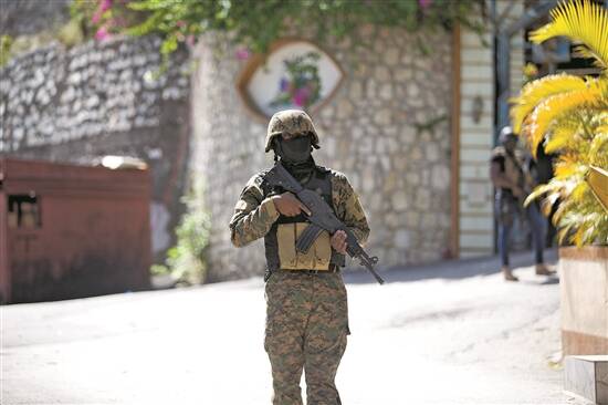 7日,一名士兵在海地总统莫伊兹的住所旁执勤 新华社发