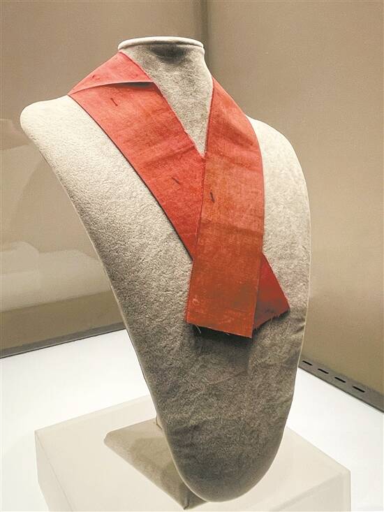 走进广州起义基本陈列展厅,首先映入眼帘的就是广州起义的标志——红布带。这条红布带长73厘米,宽10.3厘米,是国家一级文物。