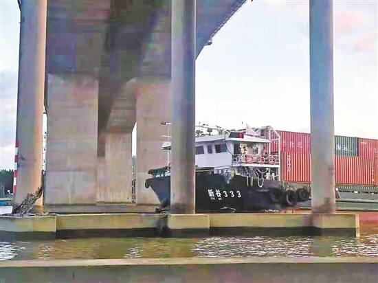 记者了解到,这艘“新谷333”货船,是广州粤港澳国际航运有限公司的船只。当日,该船从广州新港东江仓拟经浮莲岗水道、沙湾水道、容桂水道、虎跳门等水道驶往珠海高栏的内河,在航经番禺沙湾水道北斗大桥时,触碰北斗大桥桥墩,造成一桥墩受损,船体轻微受损,未造成人员伤亡和水域污染。