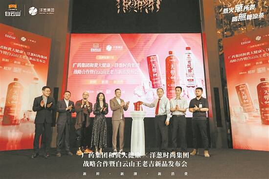 今年5月1日,洋葱集团联合广药集团和黄大健康产品有限公司,发布了双方首次共同研制的白云山王老吉复潮新品饮料——新款无糖凉茶与气泡凉茶。这两款产品是针对年轻人群“朋克养生”生活特点,打造的细分功能饮料新品,由洋葱集团全渠道销售。