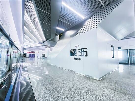 据悉,横沥站为十八号线的示范站,车站全长约694米,标准段宽约为23米,总建筑面积达5万多平方米。为确保车站机电安装及装修的质量,地铁建设者建立了样板先行制度,在横沥站打造样板段,作为全线工程验收的标准和依据。