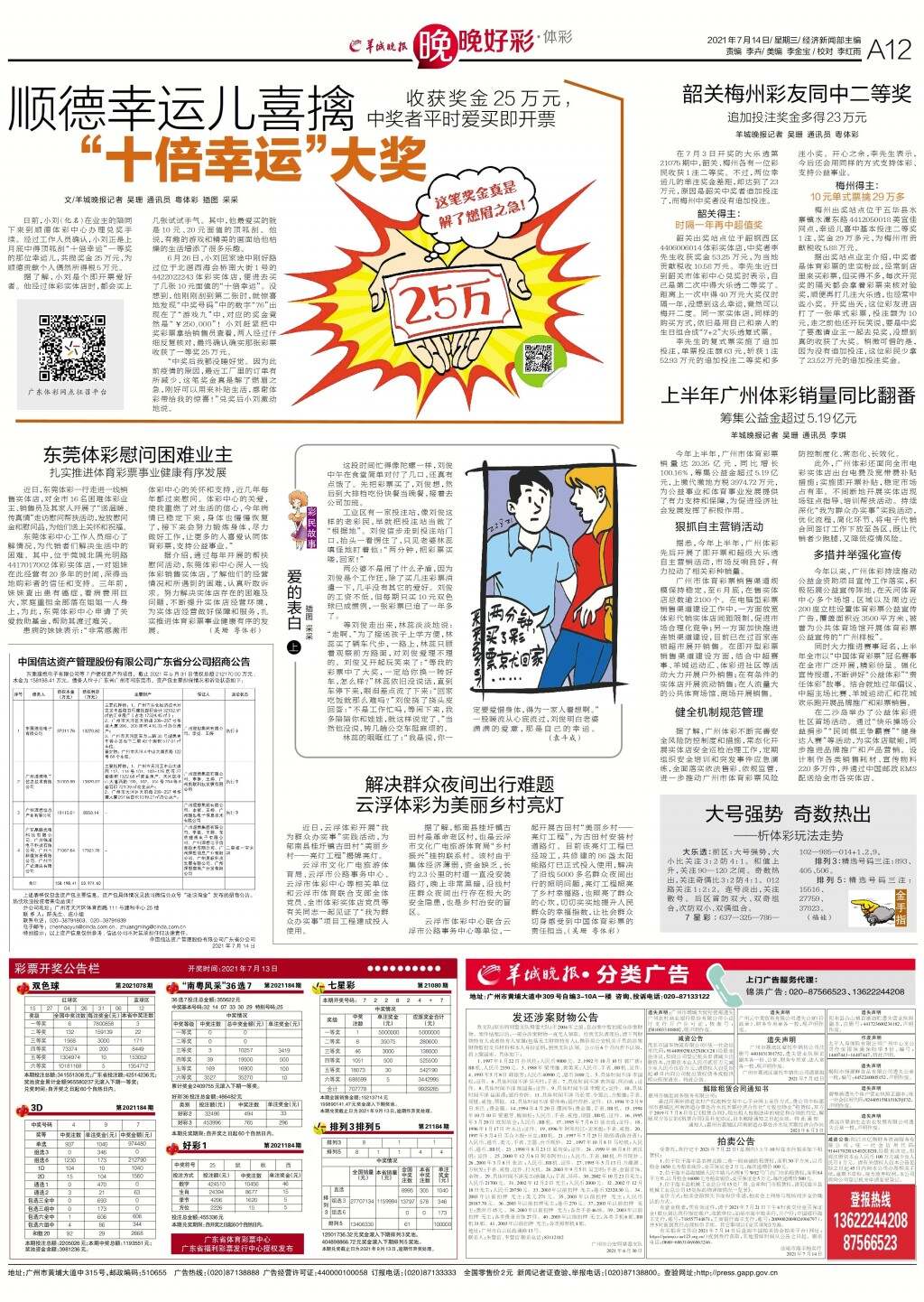 第A12版:晚晚好彩·体彩;广告