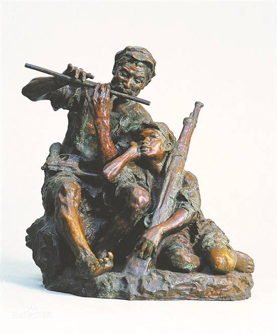 该作品成功地通过老战士吹笛子、小战士依偎在身旁倾听的造型,展现出艰苦年代的革命乐观主义精神。