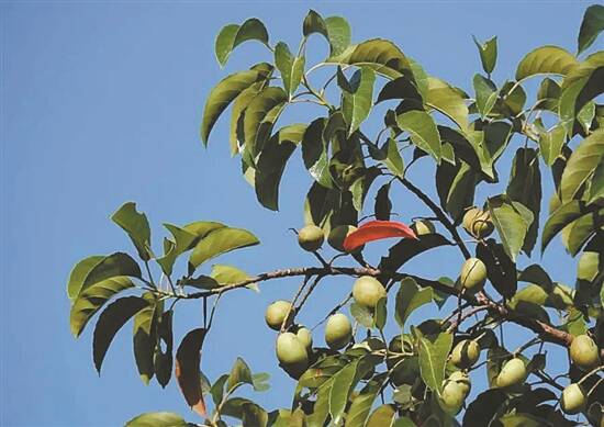 可惜锡兰橄榄的盛花期很短,开花持续两周左右后,便进入果实发育期。最初枝头上的坐果不少,但成长过程中会经历几次疏果落果的阶段,以保证植株有足够的营养来供应最终留下的果实。到了12月下旬至翌年1月,锡兰橄榄的果实开始成熟,果肉由硬变软,最终果熟会掉落地面。