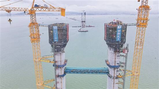 羊城晚报讯 记者王丹阳,通讯员粤交集宣、岳路建、王云利、陈旭斌摄影报道:19日下午5时,深中通道伶仃洋大桥西主塔封顶,标志着世界上最大跨径海中钢箱梁悬索桥——伶仃洋大桥两座主塔全部封顶,全面转入上部结构施工阶段。此前大桥东主塔已于6月17日封顶。