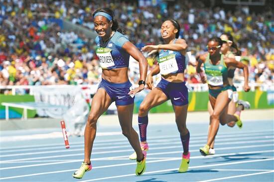 里约奥运美国队接棒失误的一刻 图/视觉中国