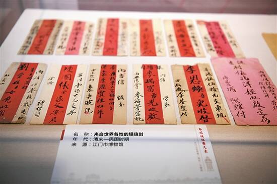 “家国情怀寄尺素——江门五邑侨批(银信)专题展”展出的侨批 杨兴乐 摄