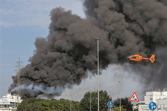7月27日,德国西部城市莱沃库森发生爆炸的化工园区升起浓烟。目前,爆炸事故已致16人受伤,其中4人重伤,另有5人失踪。 新华社发
