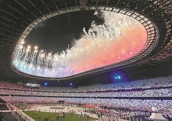 焰火散去,新国立竞技场内洒满紫色的光。在光影的映衬下,大屏幕上打出“感谢”的日语字母。东京感谢全世界运动员的拼搏,感谢所有为奥运付出过努力的人。而我们也要感谢东京,感谢他们在如此困难的情况下为世界奉献了一场难忘的聚会。